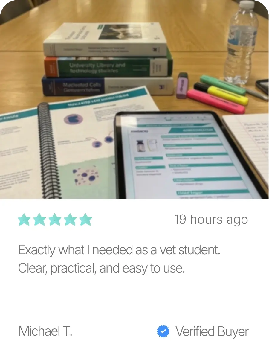 Vet Study Bundle was created during veterinary school, after experiencing how overwhelming the amount of material and scattered notes can be.